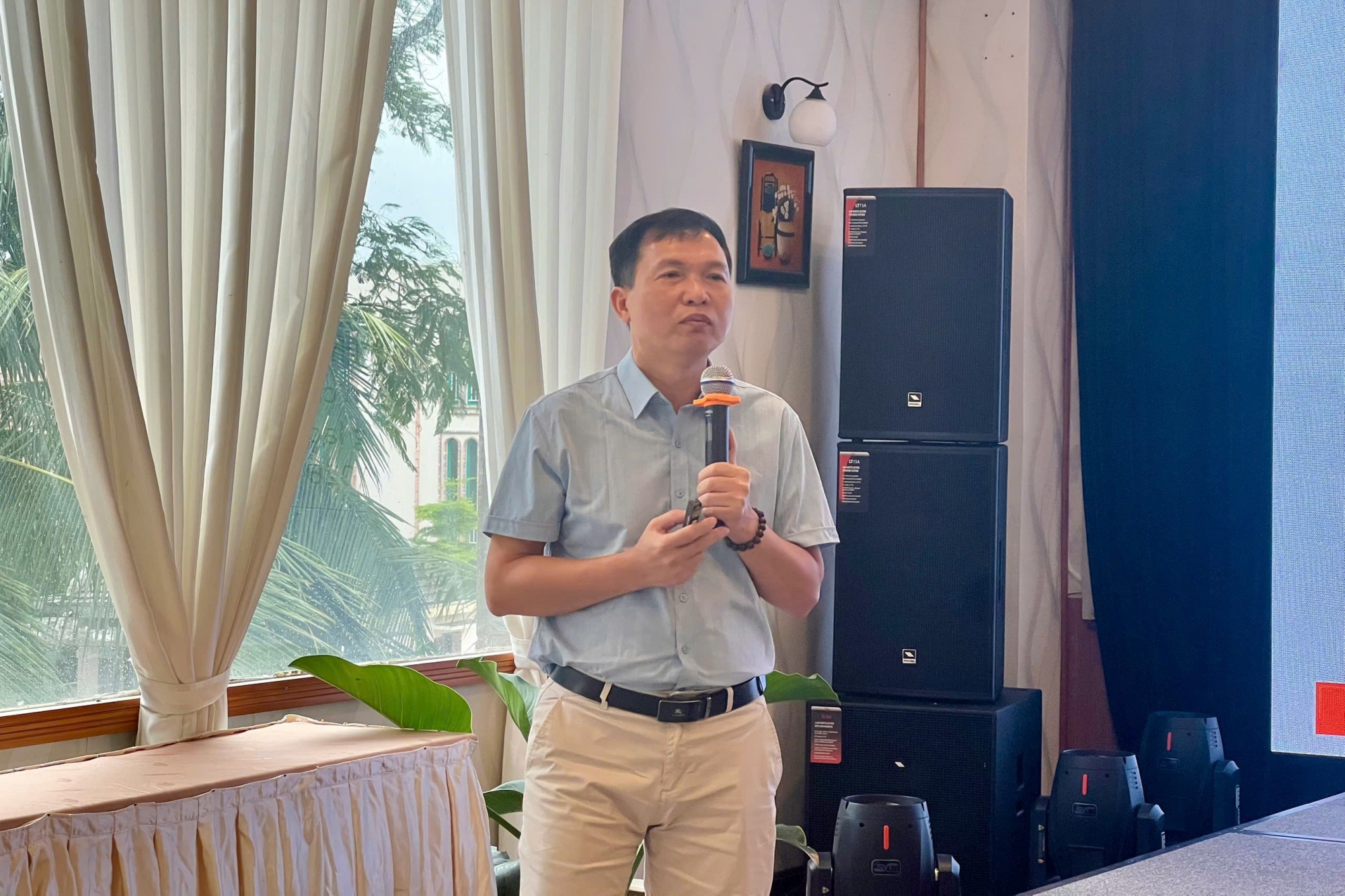 Ảnh: BS. Nguyễn Hồng Hải, Phó Giám đốc Bệnh viện Phổi tỉnh Nghệ An, chia sẻ về kinh nghiệm làm việc cùng cộng đồng trong phòng, chống bệnh lao tại Nghệ An.